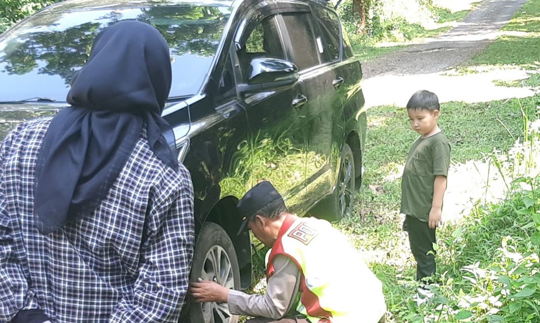 Tak ingin kejadian tersebut mengganggu liburan keluarga tersebut, Kapolsek Darmaraja, AKP Agus Rudiarto yang saat itu melintas di sekitar tempat kejadian, langsung menghampiri mereka dan memberikan bantuan dengan mengganti ban yang pecah.