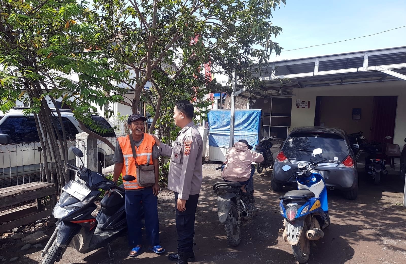 Seperti terlihat Bhabinkamtibmas Desa Ujungjaya Polsek Ujungjaya Polres Sumedang Brpka M.Faris Alpahad saat sambangnya berdialogis dengan juru parkir di Bank BRI Unit Ujungjaya seraya menyampaikan pesan Kamtibmas untuk berperan aktif menjaga keamanan dilokasi dan lebih waspada terhadap pelaku curranmor, segera laporkan ke Polsek Ujungjaya Polres Sumedang jika terjadi kerawanan maupun gangguan Kamtibmas.