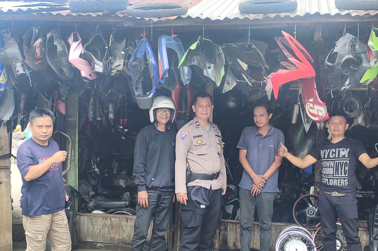 Dalam kegiatan tersebut, Aipda Sandy Surya Lesmana berbincang-bincang dengan para pedagang onderdil bekas dan memberikan himbauan tentang pentingnya menjaga keamanan wilayah sekitar.