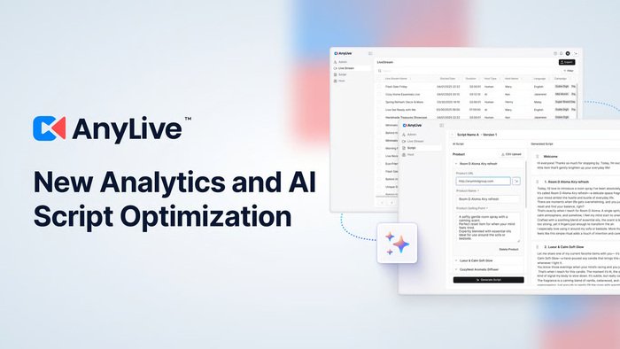 AnyLive sebelumnya mendukung skrip yang dibuat AI dari URL produk. Platform ini kini selangkah lebih maju dan menggunakan data yang dianalisis untuk menyempurnakan dan mengoptimalkan konten skrip untuk siaran mendatang. Baik host live stream manusia maupun AI kini dapat memanfaatkan skrip yang dibuat secara otomatis, selaras dengan merek, terdengar alami, yang menggabungkan sentimen pemirsa, tren komentar, data retensi, dan perilaku konversi.