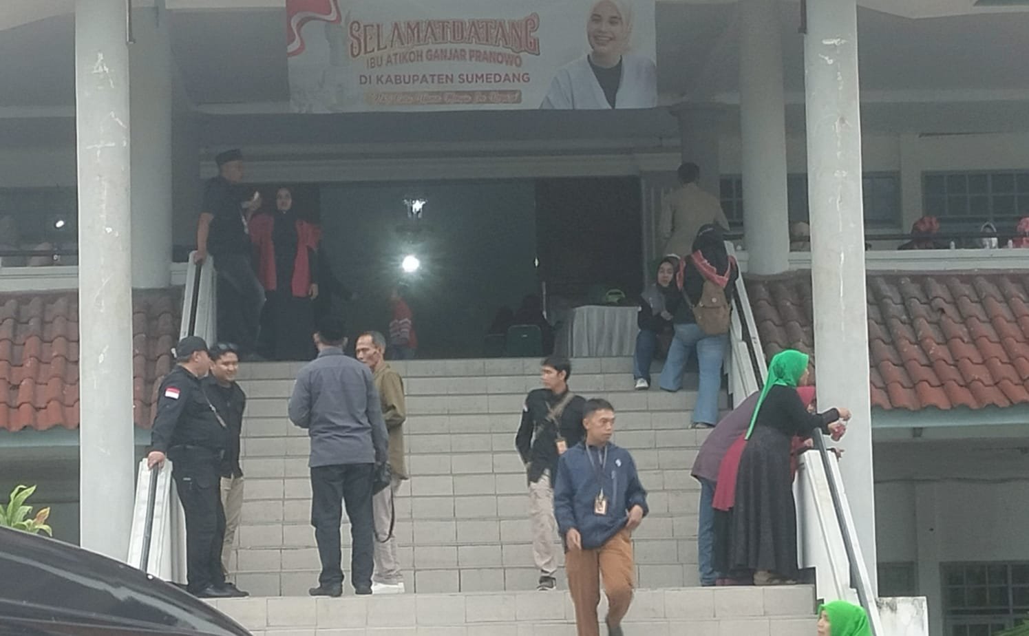 Tampak hadir sejumlah pimpinan Bawaslu Kabupaten Sumedang, mulai dari Ketua Ade Adrianta Sinulingga, Luli Rusli, Fachrulroji Al Fitri bersama para stafnya hingga Panwaslu Kecamatan Sumedang Selatan hadir langsung untuk melakukan pengawasan kegiatan Siti Atikoh di Sumedang pada Senin 4 Desember 2023.