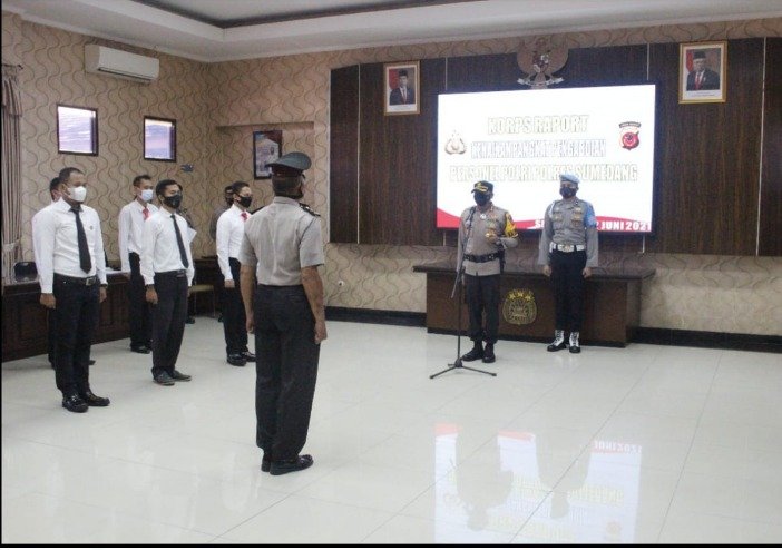 Dalam sambutannya, Kapolres mengatakan, bahwa kegiatan Korps Raport Kenaikan Pangkat Periode 01 Juni 2021 Personil Polres Sumedang tersebut, dilaksanakan sebagai bentuk penghargaan Pengabdian Personil terhadap Institusi Polri serta dilaksanakan dengan mematuhi Protokol Kesehatan dalam rangka penerapan Adaptasi Kebiasaan Baru (AKB) guna mencegah penyebaran Covid-19 di lingkungan Polres Sumedang.