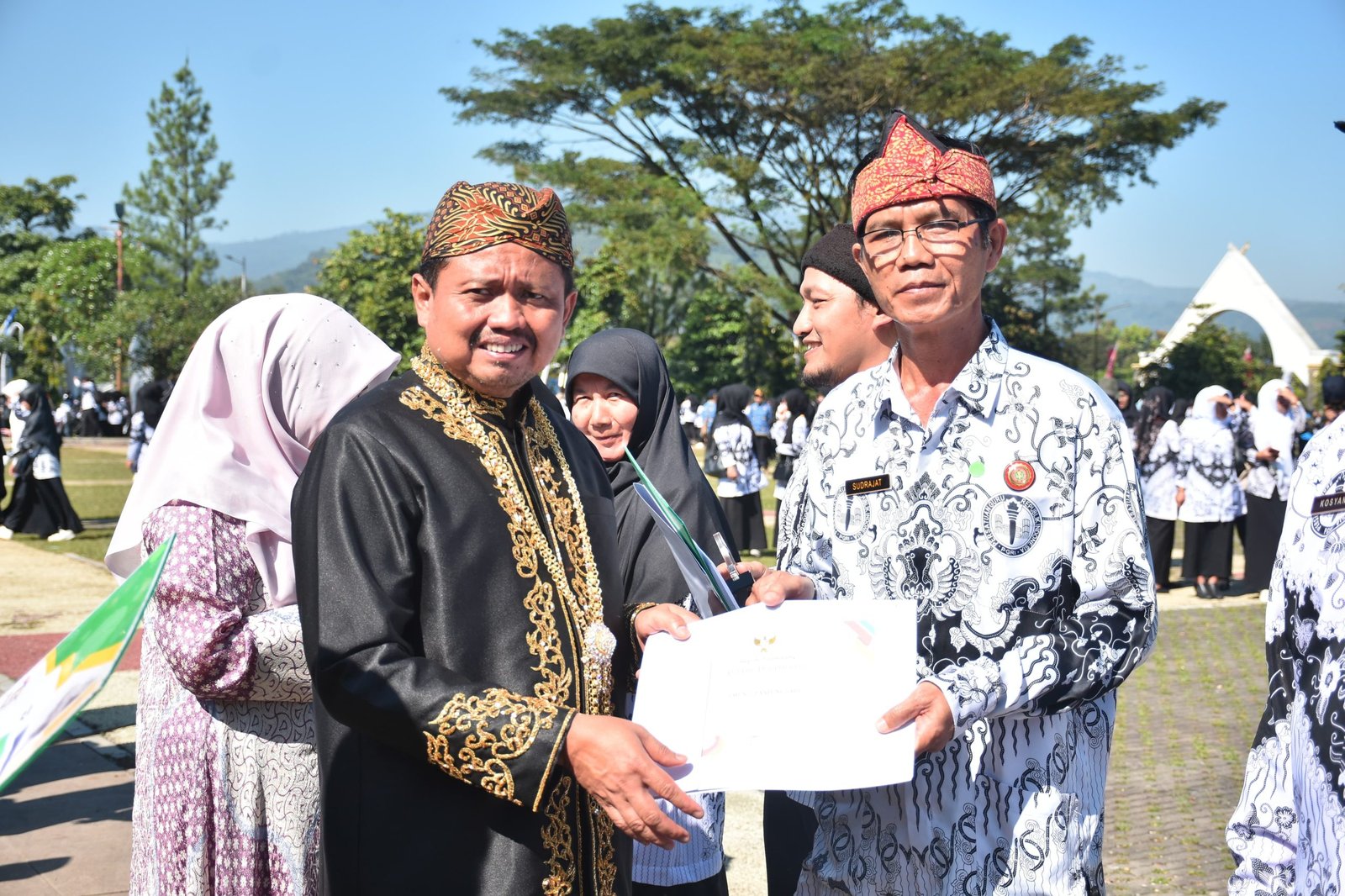 Penghargaan dibagikan Bupati Dony pada saat dirinya menjadi Pembina Upacara pada Peringatan Hari Pendidikan Nasional (Hardiknas) Tahun 2025 di Lapangan Upacara PPS, Jumat (02/05/2025).