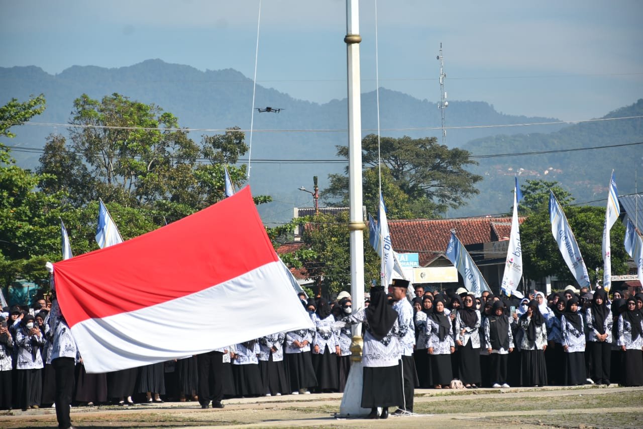 Pidato Menteri Pendidikan Dasar dan Menengah (Mendikdasmen) Abdul Mu’ti dibacakan langsung oleh Bupati Sumedang Dony Ahmad Munir dalam amanatnya.