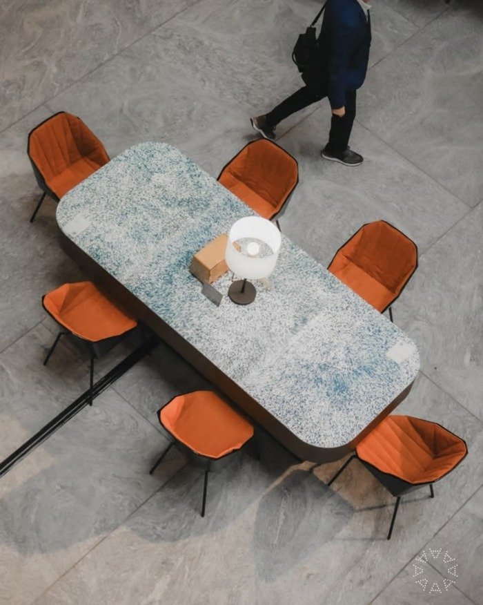 Ada detail istimewa yang membuat CHAPTERS 2.0 lebih unik dan bermakna. Bersama 4GoodThings, ASHTA mengaplikasikan meja baca yang terbuat dari lebih dari 320.000 botol plastik daur ulang. Meja-meja ini menjadi bukti bahwa keberlanjutan bisa diwujudkan tanpa kehilangan sentuhan estetika. Sambil membaca, Anda bisa merasakan tekstur meja yang dulunya limbah, kini menjadi tempat lahirnya ide-ide baru.