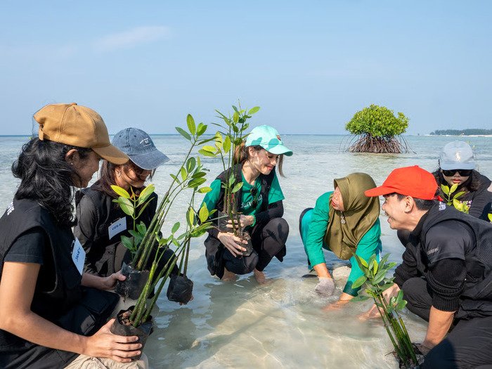 Korsum.id – Aktris dan aktivis lingkungan Cinta Laura, melalui kampanye alam bertajuk Act of Love – Mangrove Youth Mission, berkolaborasi dengan startup LindungiHutan menggelar aksi penanaman 739 batang pohon mangrove di pesisir Pulau Pari, Kabupaten Kepulauan Seribu, Jakarta. Kegiatan ini menjadi bagian dari upaya mitigasi perubahan iklim, pelestarian ekosistem pesisir, dan pemberdayaan masyarakat lokal, terutama petani mangrove di wilayah tersebut.
