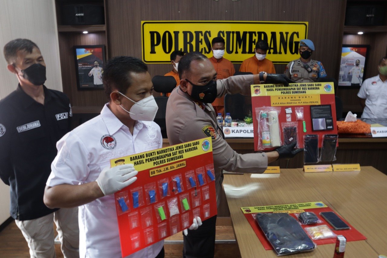 Kapolres Sumedang, pengungkapan kasus narkotika di wilayah hukum Polres Sumedang bahwa kedua tersangka mendapatkan barang haram tersebut melalui media sosial.