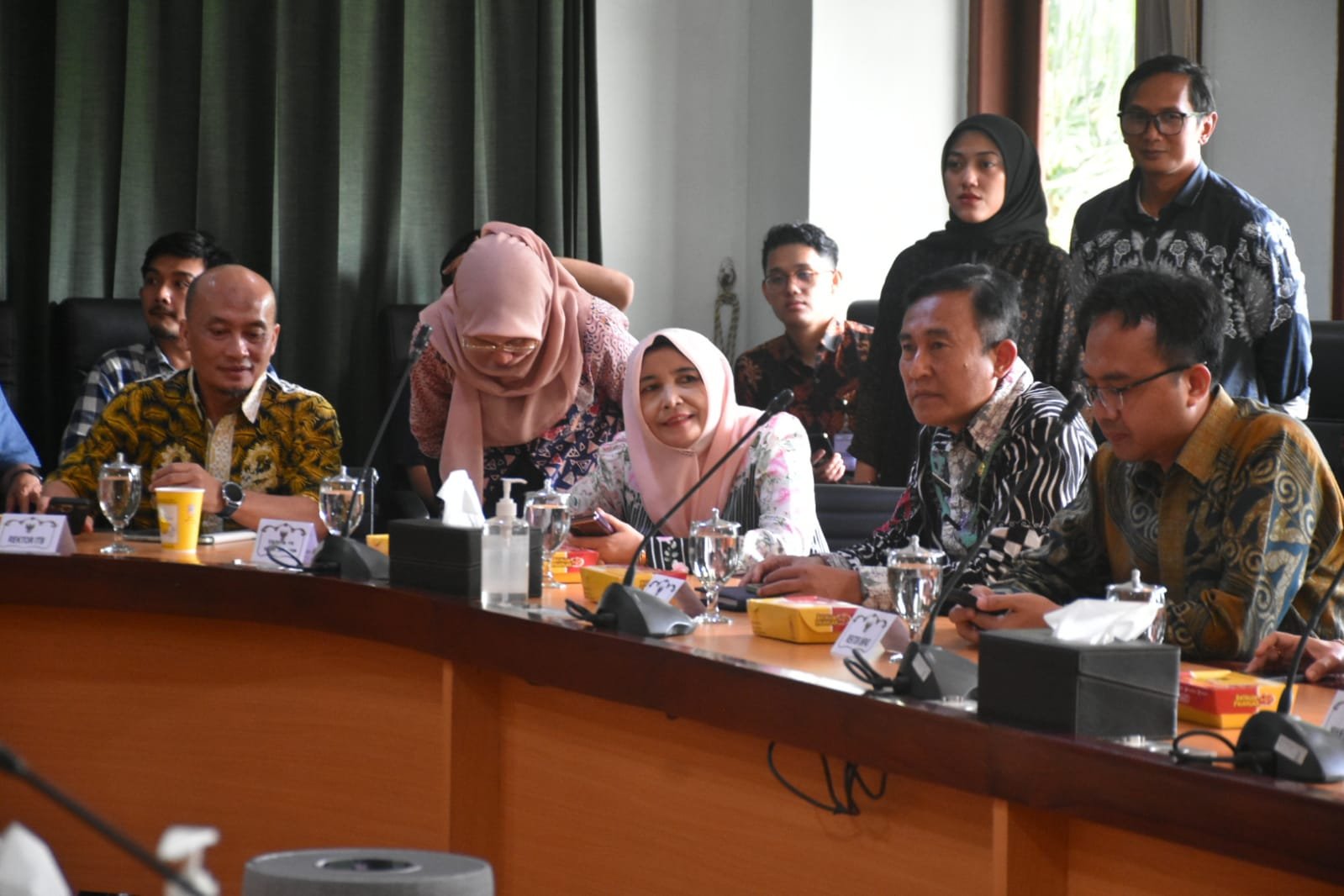 Tampak hadir dalam rapat, Plt. Dirjen Bina Adwil Kementerian Dalam Negeri, Plt. Deputi Bidang Transformasi Digital Pemerintah Kementerian PANRB, Deputi Bidang Pelayanan Publik Kementerian PANRB, Direktur Pembangunan Daerah Kementerian PPN/Bappenas, para pimpinan Perguruan Tinggi di Kawasan Jatinangor, beserta unsur terkait lainnya.