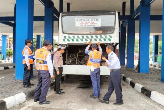 Kegiatan ini dilakukan oleh Satuan Lalu Lintas Polres Sumedang, guna memastikan kelayakan kendaraan angkutan umum yang akan digunakan oleh masyarakat dalam perjalanan pulang kampung.