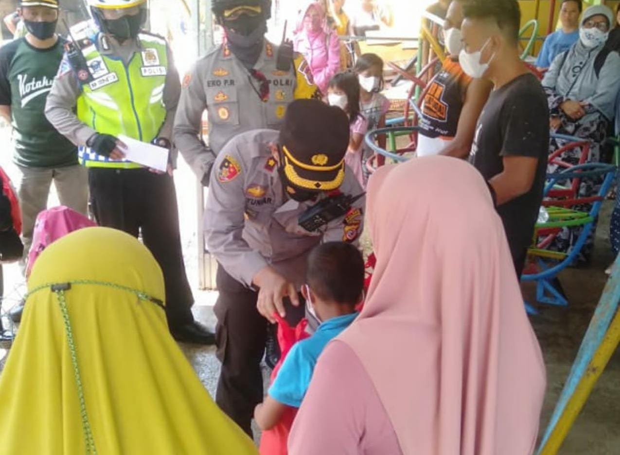 KORSUM.ID – SUMEDANG. Kapolres Sumedang AKBP Eko Prasetyo Robbyanto memberikan bantuan sosial kepada Korban Banjir di Lingkungan Ragadiem, Sumedang Selatan, Sumedang, Minggu (24/04/2022).