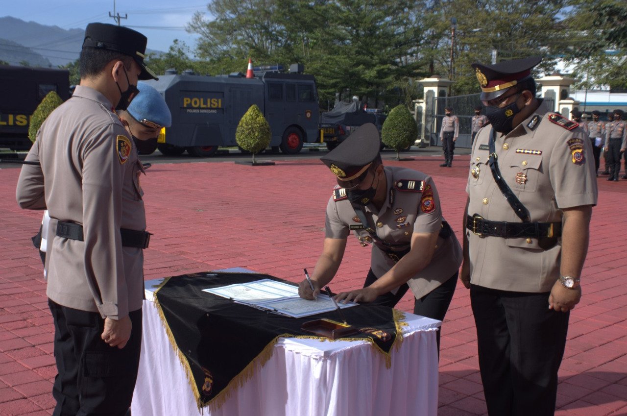 Kapolres Sumedang AKBP Indra Setiawan, S.H., S.I.K., yang menjadi inspektur upacara pada kegiatan tersebut melantik AKP Dede Sopandi, S.I.P., yang sebelumnya menjabat Kasat Reskrim Polres Garut menggantikan AKP Ade Rizki Fitriawan, S.I.K., M.A. yang mutasi jabatan menjadi Kasat Reskrim Polres Subang.