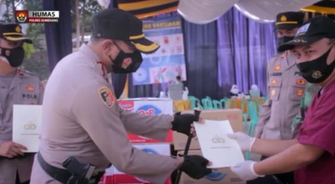 Kapolres mengatakan, pelaksanaan vaksinasi merdeka saat ini dilaksanakan di 3 titik yaitu di polres sumedang, Tomo dan Tanjungsari.