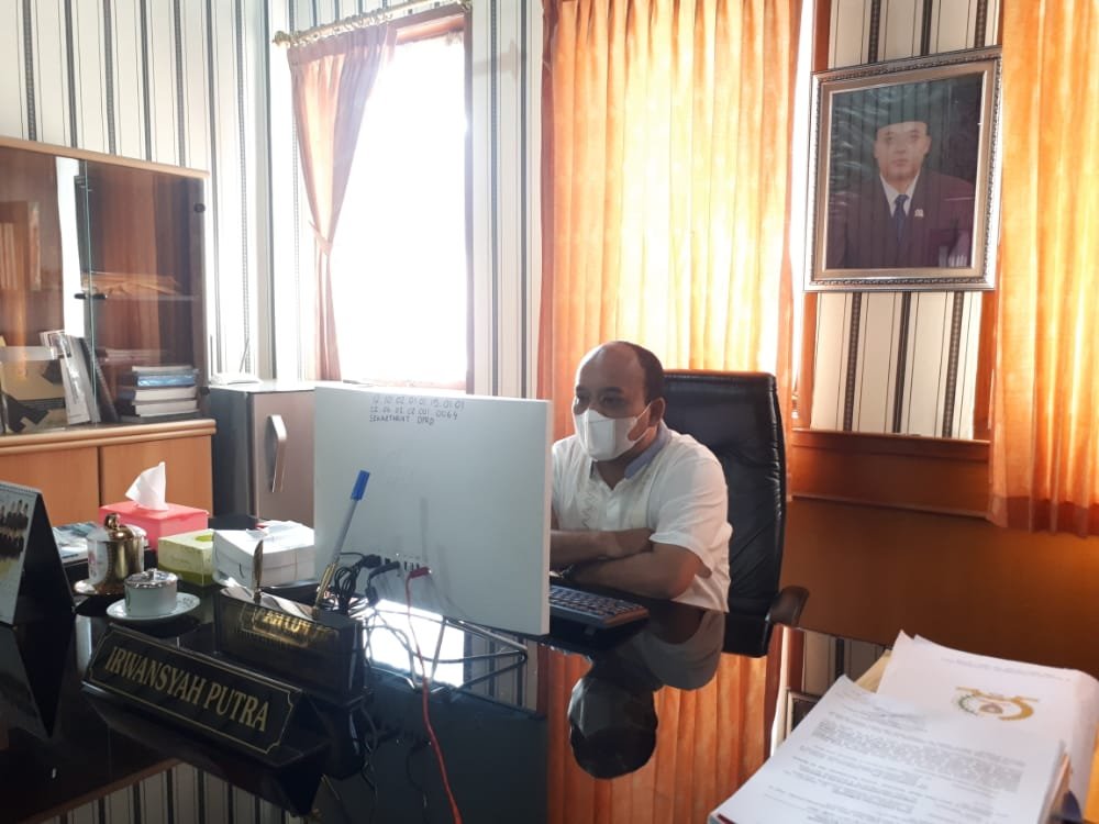 Demikian disampaikan Ketua DPRD Kabupaten Sumedang, Irwansyah Putra usai mengikuti Rapat Koordinasi Forkopimda Sumedang, melalui Zoom Meeting bersama Bupati Sumedang Dr. H. Dony Ahmad Munir, S.T, M.M, di Ruang Kerjanya, Jumat (18/6/2021).