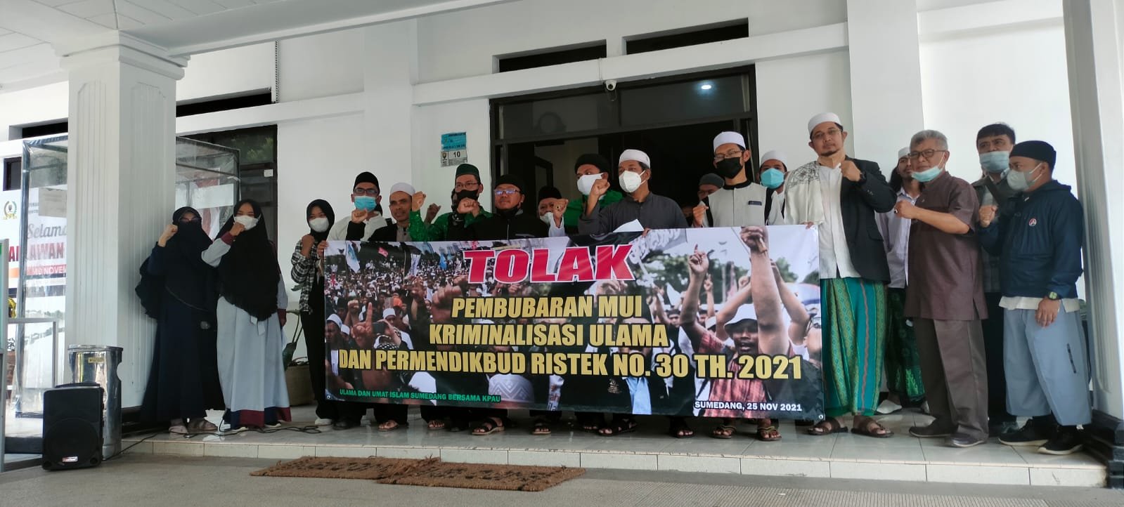 “Intinya kami ingin menyerukan kepada seluruh umat Islam untuk menolak seruan pembubaran MUI, dan menolak Permendikbud Ristek Nomor 30 Tahun 2021 Tentang PPKS karena bisa berpotensi melegalkan perzinaan,” ucap Dedi.