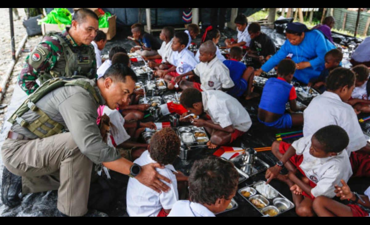 Tak hanya pelayanan kesehatan, masyarakat Desa Batas Batu, Distrik Krepkuri, Kabupaten Nduga, Provinsi Papua Pegunungan juga menerima makanan bergizi, paket sembako, dan akses air bersih, yang dibagikan kepada setiap keluarga.