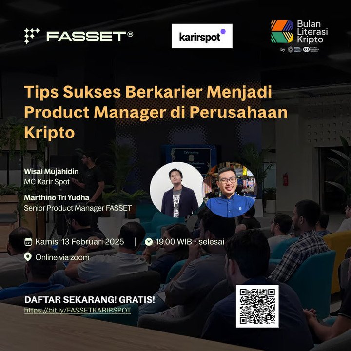 Acara yang berlangsung pada Kamis, 13 Februari 2025, ini menghadirkan Marthino Tri Yuda, Senior Product Manager Fasset, dan didukung oleh KarirSpot sebagai mitra kolaborasi. Dalam sesi ini, Marthino membagikan wawasan tentang tantangan dan peluang dalam membangun produk berbasis kripto, mulai dari adopsi pengguna, regulasi, hingga persaingan industri. Ia juga menekankan pentingnya keterampilan strategis seperti analisis data, komunikasi yang efektif, dan pemahaman regulasi untuk sukses di bidang ini.