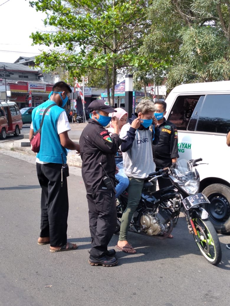 Sumedang, KORSUM – Muhammadiyah Covid-19 Command Center (MCCC) bersama Radio Antar Penduduk Indonesia (RAPI) Sumedang melakukan operasi masker bagi para pengendara motor dan mobil.
