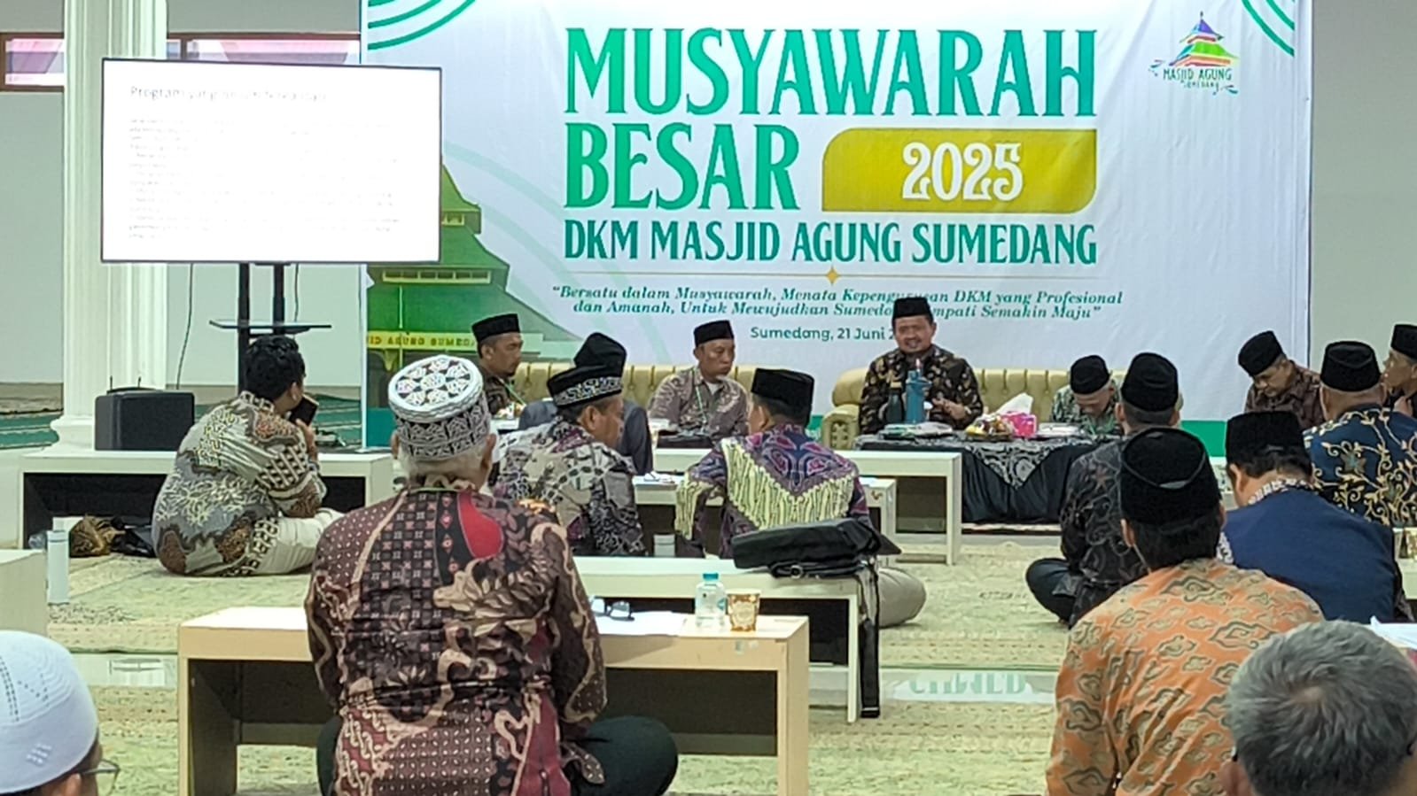 Dalam upaya memperkuat manajemen dan tata kelola masjid yang lebih baik, Dewan Kemakmuran Masjid (DKM) Masjid Agung Sumedang menggelar Musyawarah Besar (Mubes) Tahun 2025, Sabtu (21/6/2025)