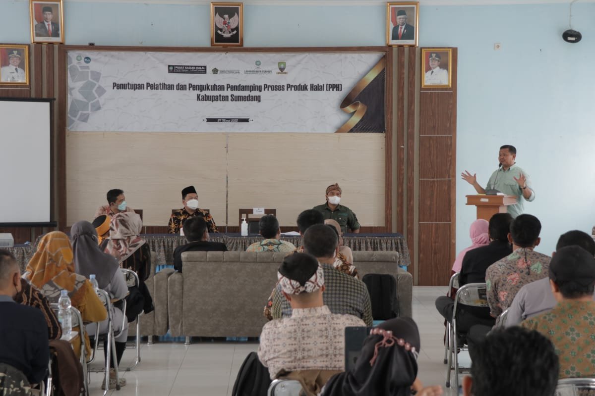 Ditambahkan Bupati, kegiatan yang difasilitasi Lembaga Pedamping PPH UIN Sunan Gunung Djati tersebut bertujuan merekrut, melatih dan membina Pendamping PPH di Kabupaten Sumedang dalam rangka percepatan fasilitasi sertifikat halal gratis bagi pelaku umk.