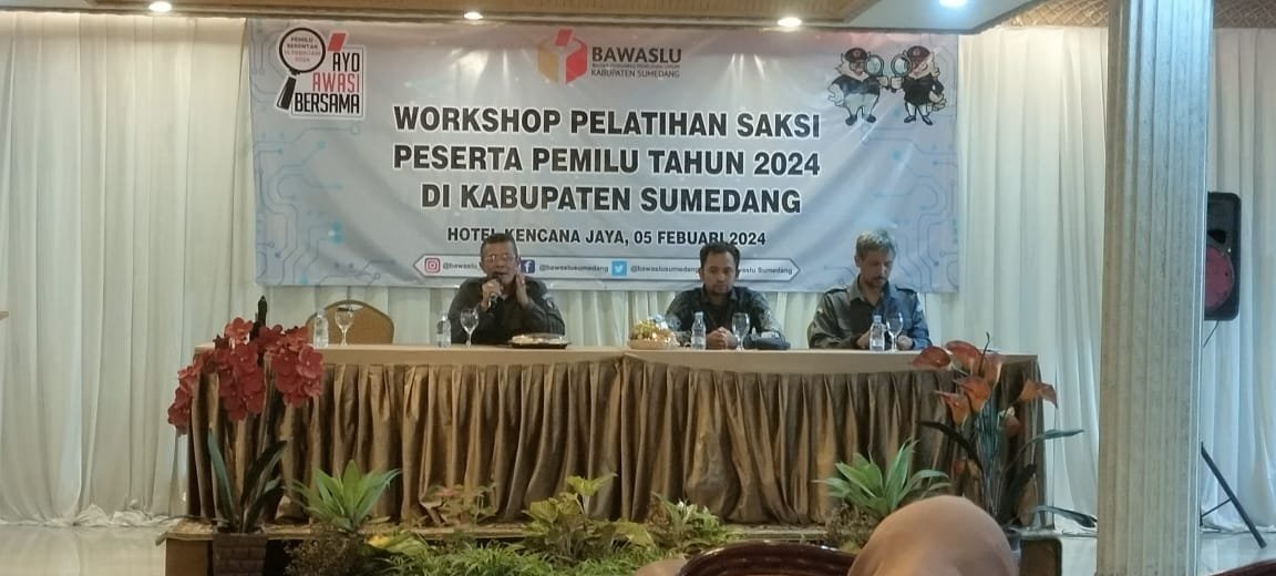“Pelatihan kepada para saksi ini, adalah salah satu ikhtiar dari Bawaslu Kabupaten Sumedang untuk mencegah potensi-potensi pelanggaran pemilu yang bisa saja terjadi dalam proses pemungutan dan penghitungan suara berlangsung,” tuturnya.