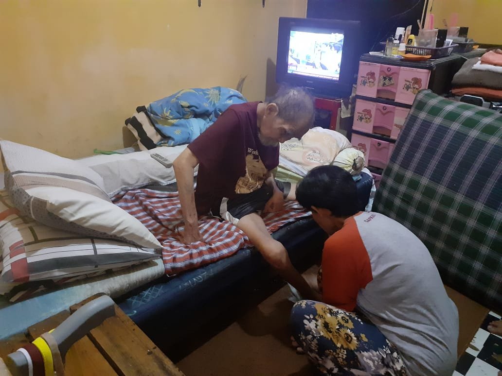 KORSUM.ID–Warga tak mampu RT 01 / RW 07 Gang Perak no 74 B di jalan Cut Nyakdien Kelurahan Regol Wetan Dudin Sarifudin yang sekarang menginjak usia 70 tahun, menderita penyakit stroke sudah tiga tahun.