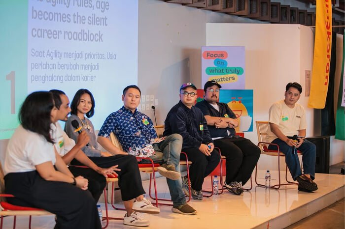 Seluruh panelis membahas beberapa fenomena sosial yang kerap dihadapi di dunia profesional mulai dari isu ageism, figur “kepakaran” di era media sosial, dan hubungan kesejahteraan karyawan dengan ambisi perusahaan. Panel diskusi berlangsung interaktif dengan tanggapan dan komentar partisipan yang ditampilkan langsung secara real time di layar besar.