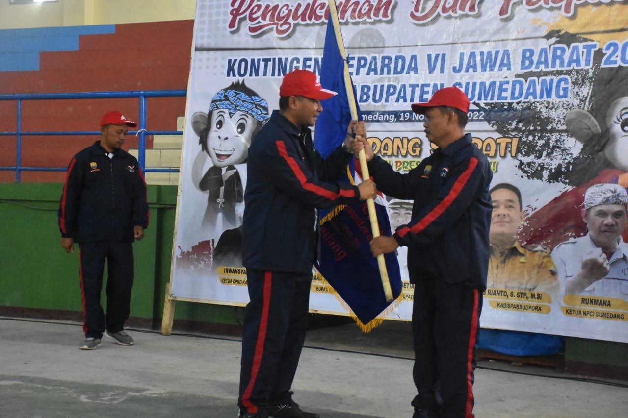 Sumedang, KORSUM.ID – Kontingen National Paralympic Committe Indonesia (NPCI) asal Kabupaten Sumedang resmi dilepas oleh Wakil Bupati Sumedang Erwan Setiawan di GOR Tadjimalela, Sabtu (19/11/2022).