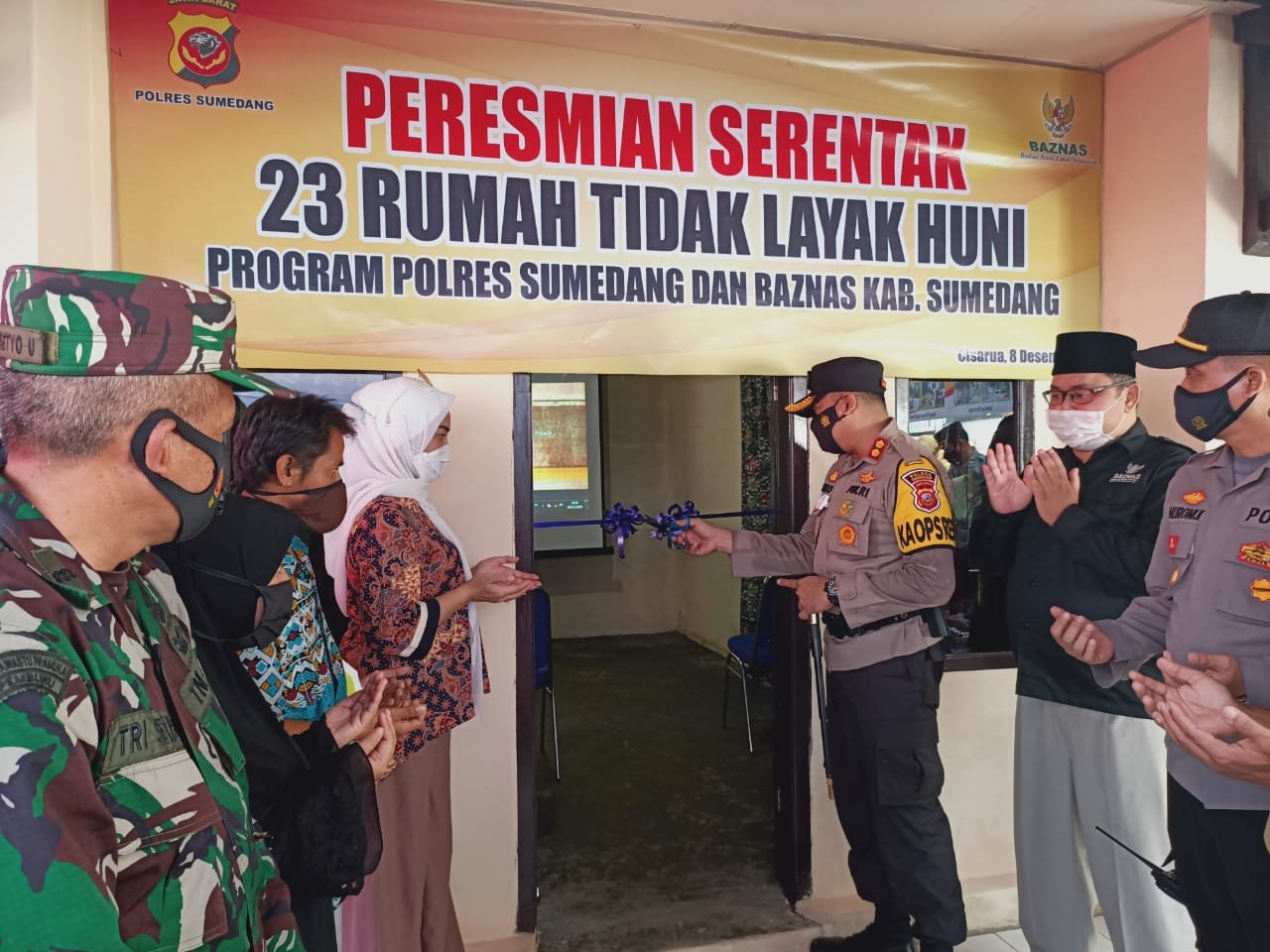 Sumedang, KORSUM – Kapolres Sumedang AKBP Eko Prasetyo Robbyanto, resmikan secara serentak 23 Rumah Tidak Layak Huni (Rutilahu) Program Polres Sumedang dan Baznas Kabupaten Sumedang di Kecamatan Cisarua Kabupaten Sumedang, di di Dusun Umbulserang Desa Cimara Kecamatan Cisarua.