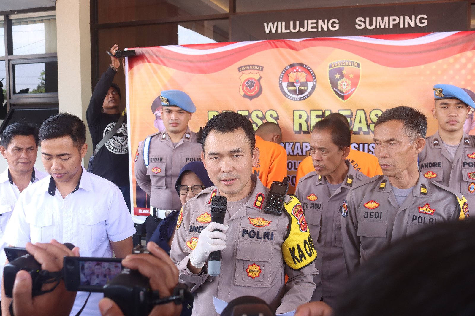 Pada kegiatan tersebut Kapolres Sumedang AKBP Indra Setiawan menerangkan bahwa Polres Sumedang berhasil mengamankan dua orang tersangka yaitu AC alias Kipli (20) warga Blok Bakum Desa Tegalmulya Kecamatan Krangkeng Kabupaten Indramayu, dan AH alias Bulus (33) warga Blok Aminah Desa Dukuh Jeruk Kecamatan Karangampel Kabupaten Indramayu.