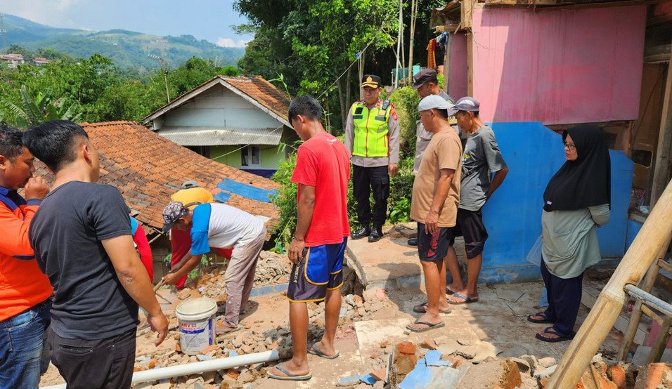 Mengetahui kejadian tersebut Kapolsek Sumedang Selatan Kompol Darli bersama anggota Polsek Sumedang Selatan Polres Sumedang Polda Jabar beserta Ketua BPD Desa Ciherang dan Lpm Desa Ciherang juga warga, melakukan pengecekan serta bergotong royong membersihkan puing kamar mandi yg rusak.