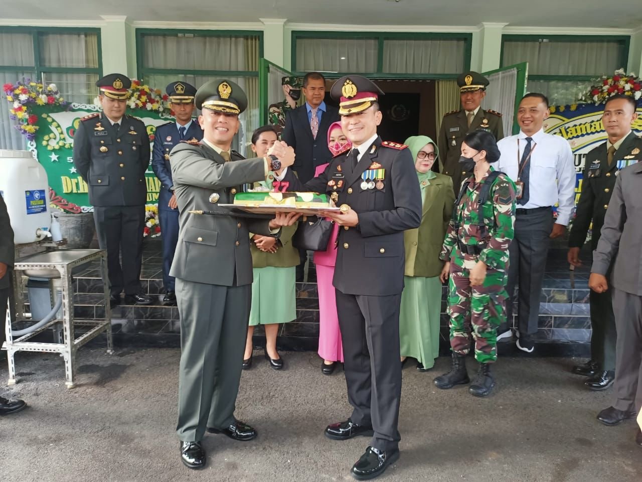 Puluhan anggota Polres Sumedang mendatangi Makodim sejak pagi hari, dimana sedang dilaksanakan Upacara HUT TNI ke 77.