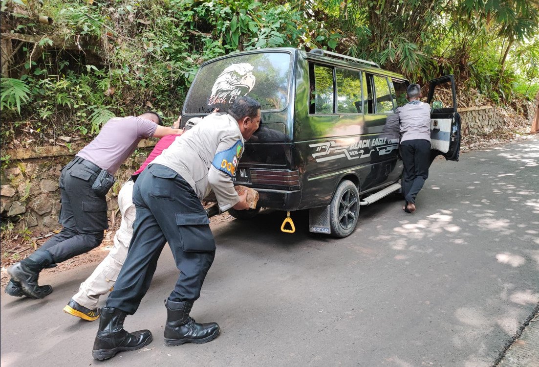 Menurut laporan yang diterima, kendaraan pengunjung tersebut mengalami mogok di jalan setelah mengunjungi obyek wisata Tanjung Duriat. Tanpa ragu-ragu, Ipda Gunawan bersama anggotanya yang sedang melaksanakan patroli langsung membantu mendorong kendaraan tersebut agar bisa kembali berjalan.