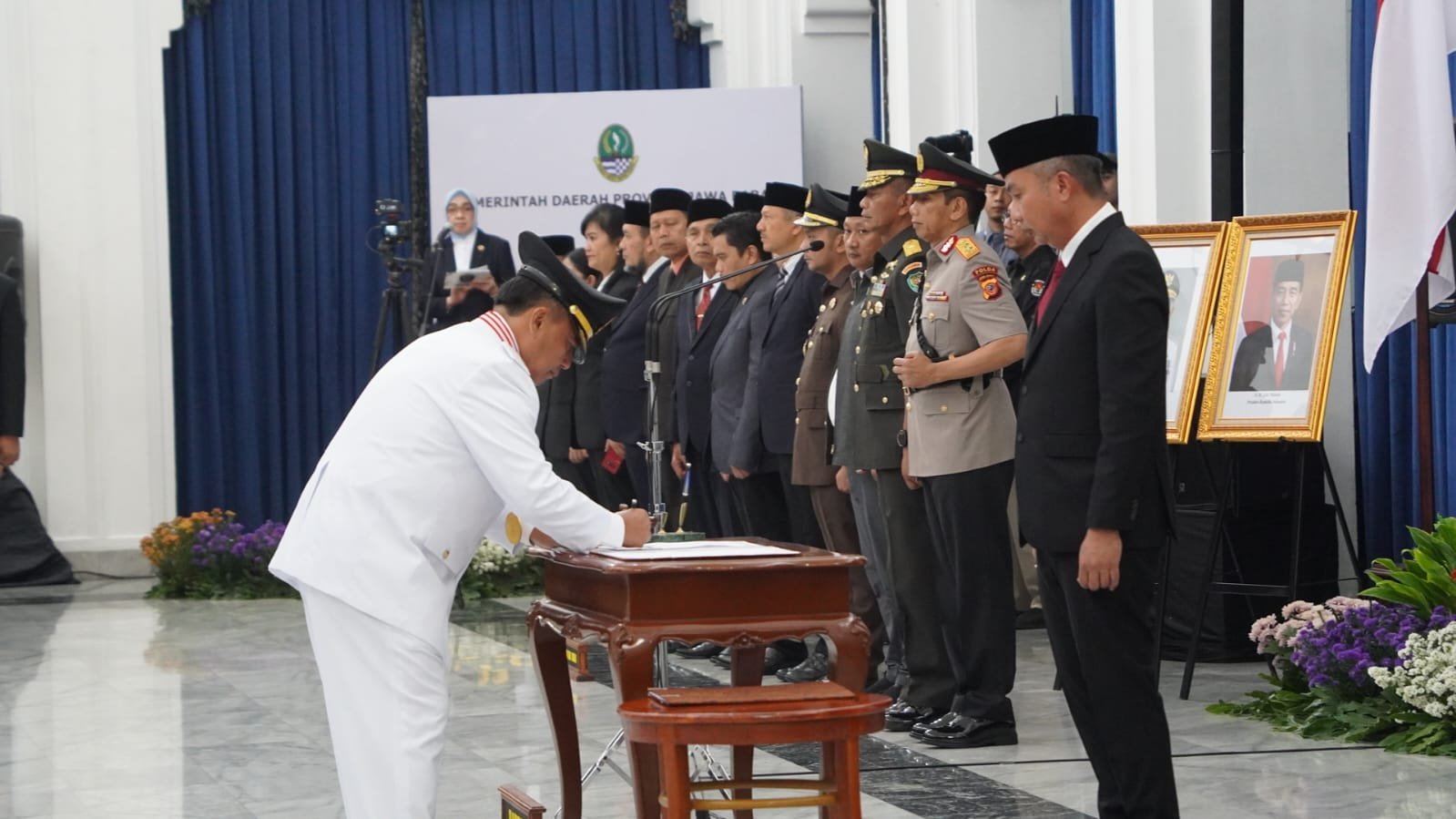 Sekda Sumedang Herman Suryatman dilantik bersama 5 Pj Wali Kota dan Bupati se-Jabar oleh Pj Gubernur Jawa Barat Bey Machmudin di Aula Barat Gedung Sate, Bandung, Rabu (20/9/2023).