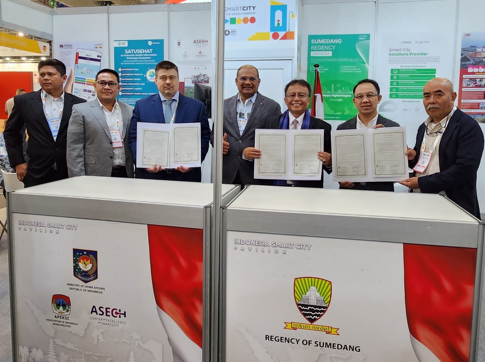 Ada yang istimewa di paviliun Indonesia pada ajang SCEWC 2023 yakni penandatangan Letter of Intent (LoI) antara Pemda Kabupaten Sumedang dengan Wisercat Group dari Estonia dan BUMN PT. INTI. Penandatanganan dilakukan oleh Penjabat Bupati Sumedang, CEO Wisercat dan CEO PT. INTI, serta disaksikan oleh Dirjen Adwil Kementerian Dalam Negeri RI.