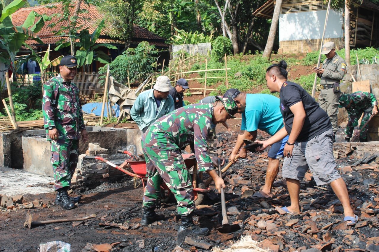 “15 personel Koramil kita turunkan, dibantu elemen masyarakat untuk membersihkan puing-puing bekas kebakaran, guna membantu korban musibah yang terjadi pada 01 januari 2020” ungkapnya.