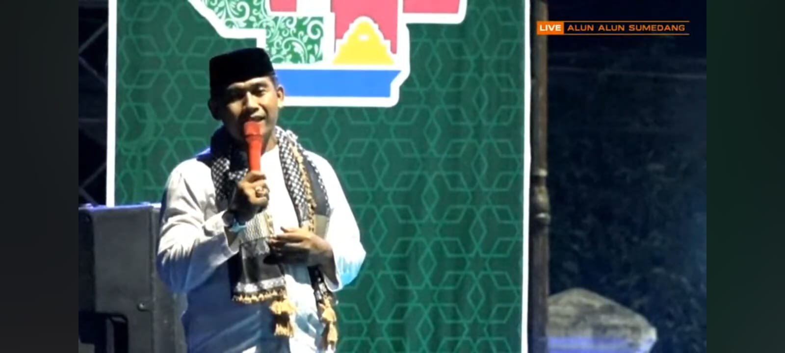 Meski diguyur hujan, ribuan jamaah tetap bersemangat mengikuti acara yang berlangsung di Alun-alun Sumedang pada Sabtu (20/4/2024) malam.