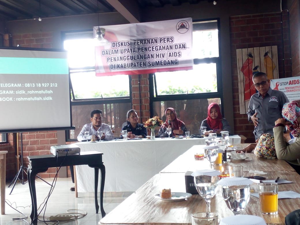 “Kasus HIV/AIDS terus bertambah diusia produktif, selain itu salah satu faktor lainnya yaitu perubahan gaya hidup (Milenia) berpotensi menimbulkan kasus baru,” ucap Retno didampingi Kepala Bidang (Kabid) Pencegahan Pengendalian Penyakit (P2P) Dinkes Sumedang, dr. Renny K Anton, Kasie Kesehatan Keluarga dan Gizi, Ai Andriany dan Kasie Rehabilitasi Badan Narkotika Nasional Kabupaten (BNNK) dr. Rahmatullah Sidik saat kegiatan Diskusi Peranan Pers dalam Upaya Pencegahan dan Penanggulangan HIV AIDS di Kabupaten Sumedang, yang di Sacipa (Sapphire City Park) Jl Prabu Tajimalela, Rancapurut Desa Rancamulya Kecamatan Sumedang Utara, Selasa (21/1).