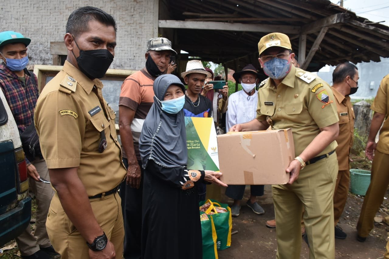 secara simbolis berupa paket Sembako dan uang tunai kepada korban kebakaran yaitu Mak Sari Nurhayati (73) asal RT 05/02 Desa Pasirbiru Kecamatan Rancakalong, Selasa (13/4/2021).
