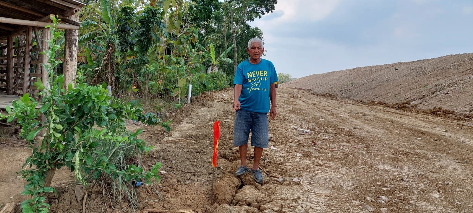 “Ketika Tanah saya diserobot proyek tol, saya langsung mengadu masalah tersebut ke salah seorang Pelaksana yang bernama Eman dari PT. GI untuk tidak diratakan oleh beko. Kemudian saya pun langsung menancapkan bendera merah sebagai tanda bahwa itu Tanah milik saya,” ungkap Edi saat ditemui di Kediamannya Rabu (7/10/2021).