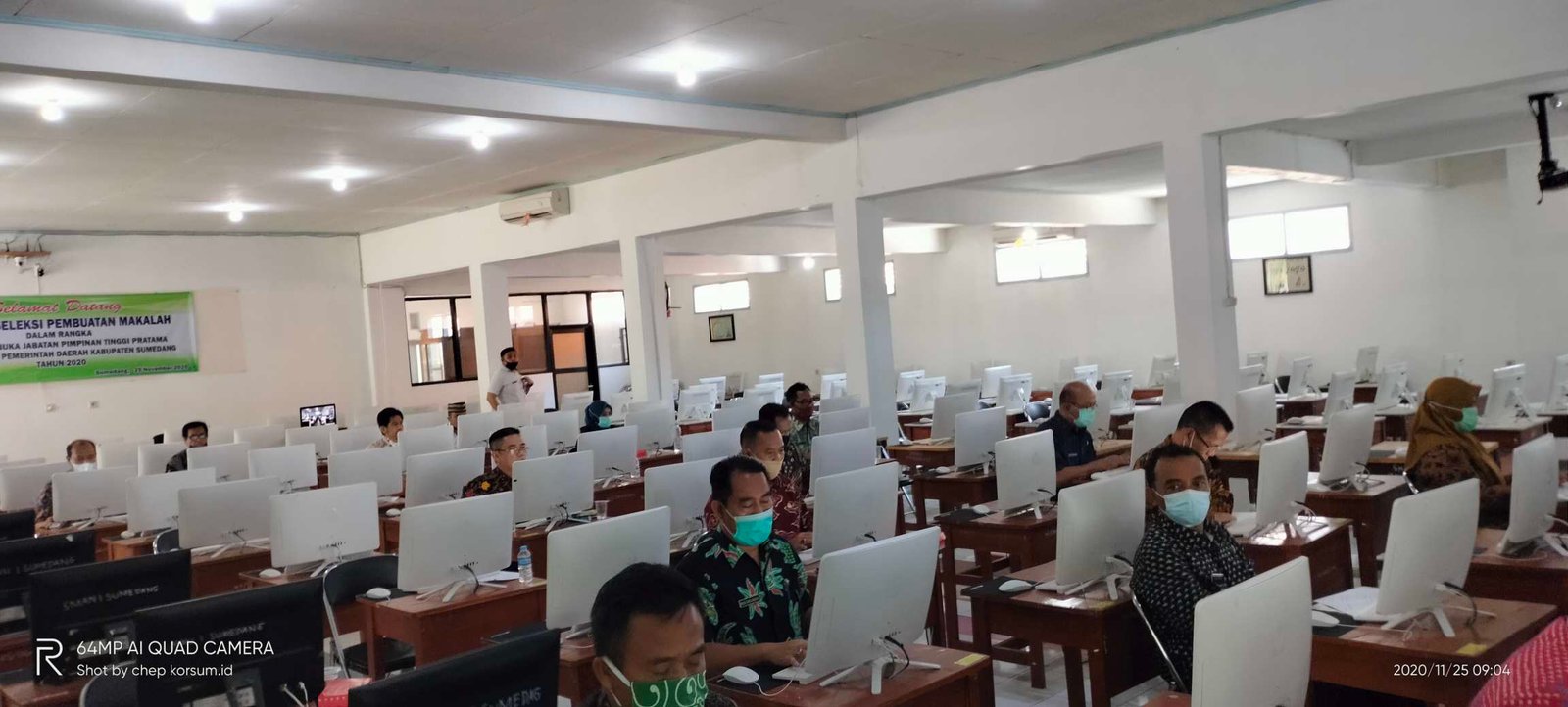 Sumedang, KORSUM – Setelah sebelumnya dinyatakan lulus seleksi administrasi, kini 28 peserta seleksi terbuka jabatan tinggi pratama (JPT) di lingkungan Pemerintah Kabupaten Sumedang, mengikuti tahapanan selanjutnya yaitu penulisan makalah atau karya tulis, di SMAN 1 Sumedang, Rabu (25/11).