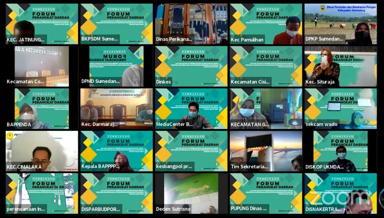 KORSUM.ID – Badan Perencanaan Pembangunan Penelitan dan Pengembangan Daerah (Bappppeda) Kabupaten Sumedang menyeleggarakan Forum perubahan Renstra Tahun 2018-2023 pada Kamis, 8 Juli 2021 diruang media center Bappppeda Sumedang dengan mekanisme secara online melalui video conference (aplikasi zoom).