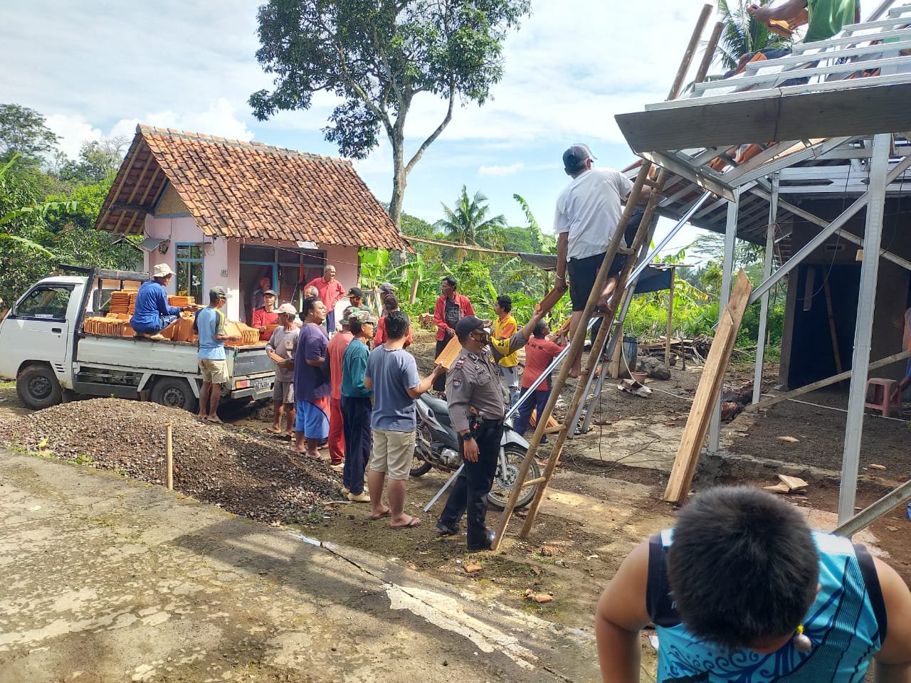 Dalam kegiatan gotong royong tersebut, Aiptu Iwan Suwarna bersama warga Desa Malaka saling bahu-membahu membangun posyandu. Mereka membersihkan area yang akan digunakan, memasang tiang-tiang kayu, dan memasang atap posyandu. Kegiatan tersebut berlangsung dengan semangat yang tinggi dan penuh kebersamaan.