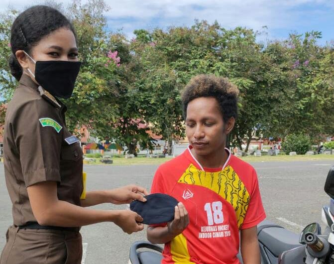 “ini contoh dan caranya untuk membantu pemutusan wabah corona Kejati Papua Barat Peduli pemutusan wabah Covid-19 dengan membagikan masker kain yang bisa dicuci dan dipakai ulang,” ujar Yusuf, kepada wartawan, Manokwari, Papua Barat, Selasa (14/4/2020).