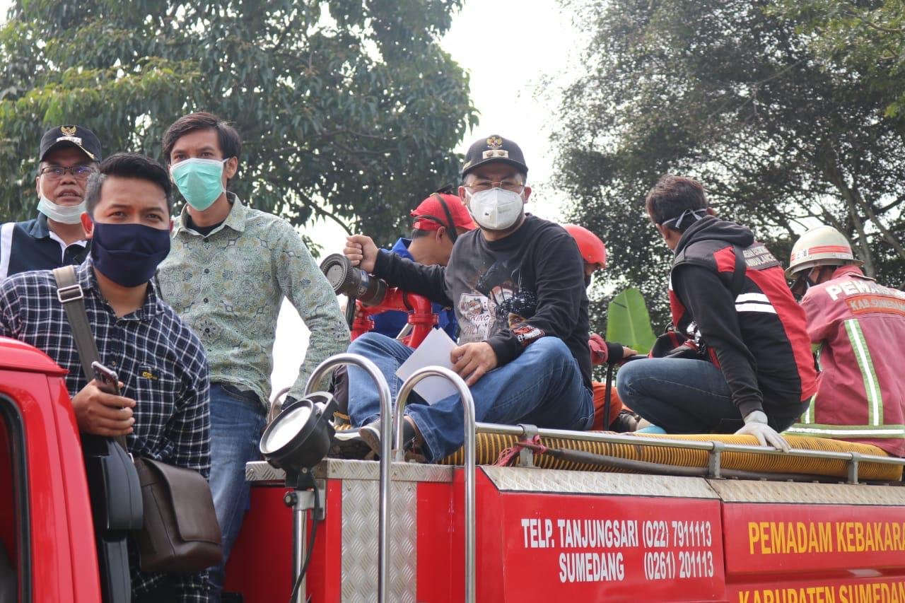 Begitu juga yang dilalukan Anggota Komisi III DPRD Kabupaten Sumedang Asal Dapil 6, Dede Mulyadi terjun langsung dalam penyemprotan di Daerah Pamulihan, Dede yang juga ikut membantu petugas dalam penyemprotan menggunakan Mobil Damkar.