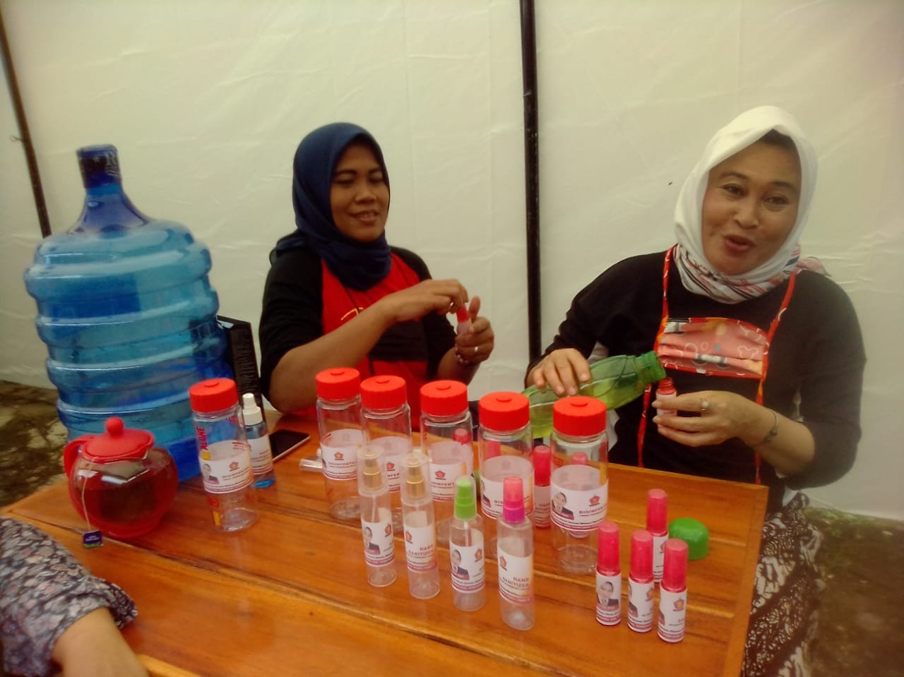 Tidak ketinggalan Wakil Ketua DPRD Kabupaten Sumedang Titus Diah ikut membagikan Hand Sanitizer dalam rangka mencegah penyebaran Virus Corona di Wilayah Kecamatan Cimalaka.