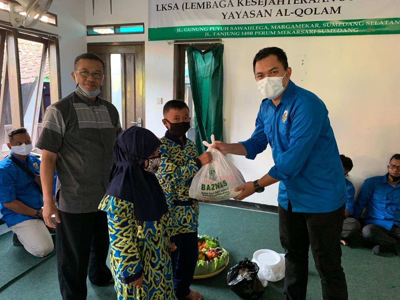 Selain sembako turut dibagikan santunan uang tunai ke penerima manfaat di Kota tahu itu.