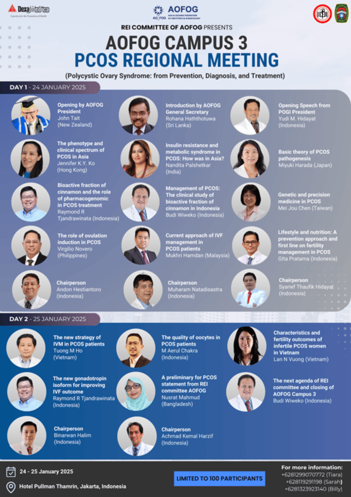 Korsum.id – Indonesia akan menyelenggarakan AOFOG Campus 3: PCOS Regional Meeting pada 24-25 Januari 2025 di Hotel Pullman Thamrin, Jakarta.