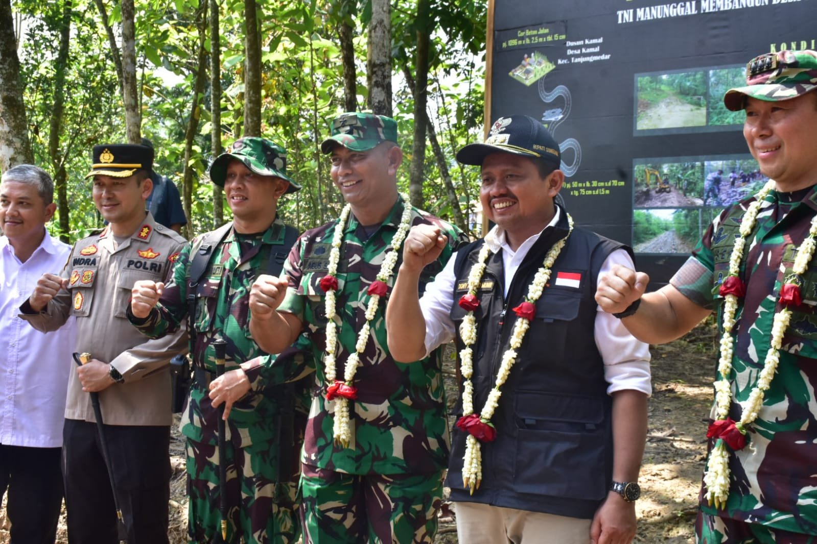 “Dulu daerah ini terpencil, sekarang dengan adanya jalan ini masyarakat perekonomianya jadi terbuka. Kalau masyarakat sejahtera, kita merasa senang. Kita hadir di sini semuanya untuk membangun dan mensejahterakan masyarakat,” ujarnya.