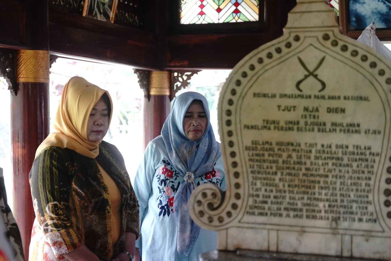 Sekretaris Daerah Kabupaten Sumedang, Hj Tuti Ruswati, mendampingi Sekretaris Jenderal Majelis Permusyawaratan Rakyat Republik Indonesia (MPR RI), Siti Fauziah, lakukan ziarah ke makam Cut Nyak Dien di Gunung Puyuh dan Makam Pangeran Sugih (Pangeran Soeria Koesoemahadinata, Sabtu (13/12/2025).