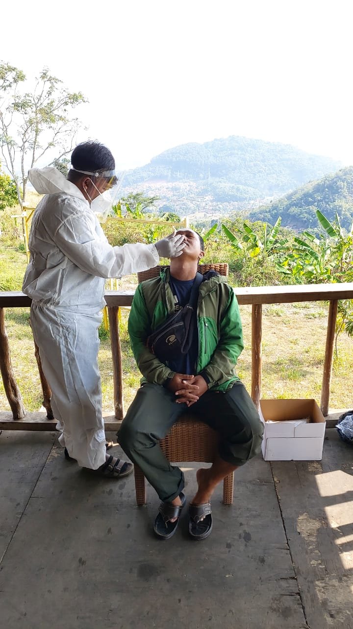Online Paragliding Festival 2021, puluhan atlet paralayang dan perangkat lomba/panitia mulai menjalani Swab Tes Antigen di Bukit Toga Desa Sukajaya Kecamatan Sumedang Selatan, Kab. Sumedang, Jumat (3/9/2021).